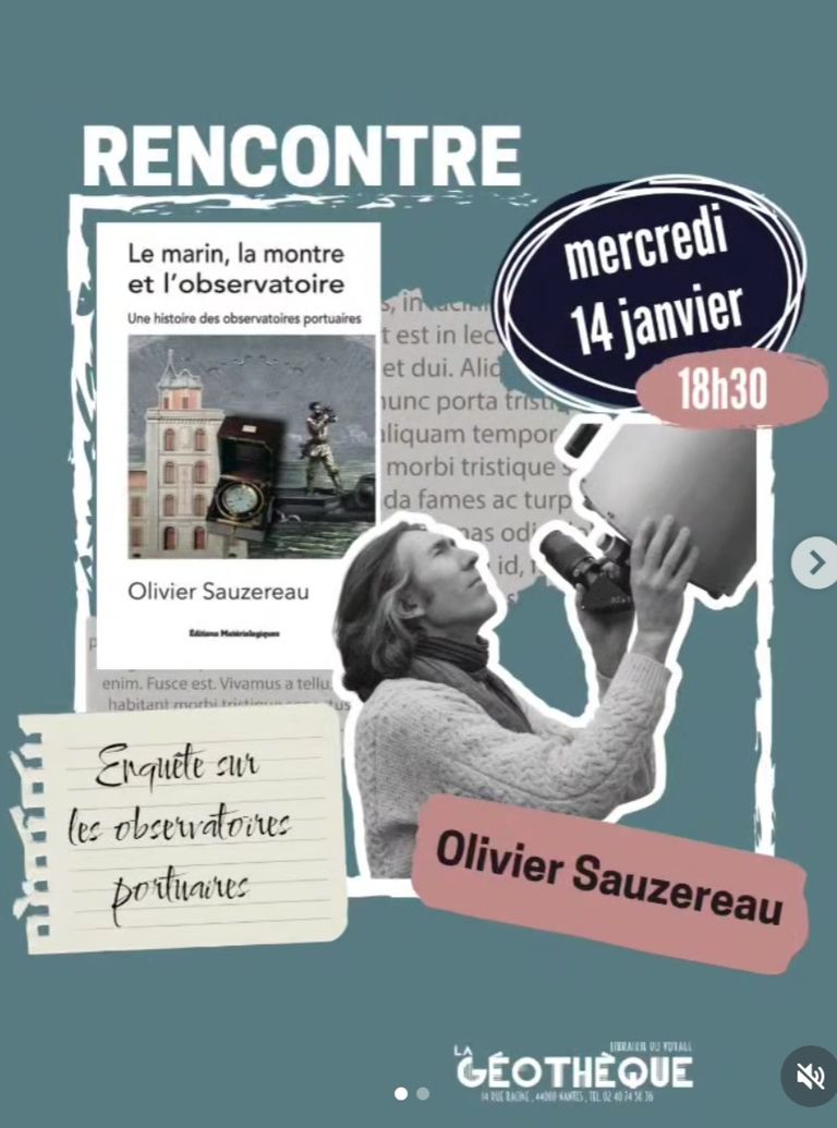 Une rencontre dédicace autour de mes deux derniers ouvrages, consacrés à l'histoire des observatoires oubliés de la Marine. A la librairie La Géothèque à Nantes.